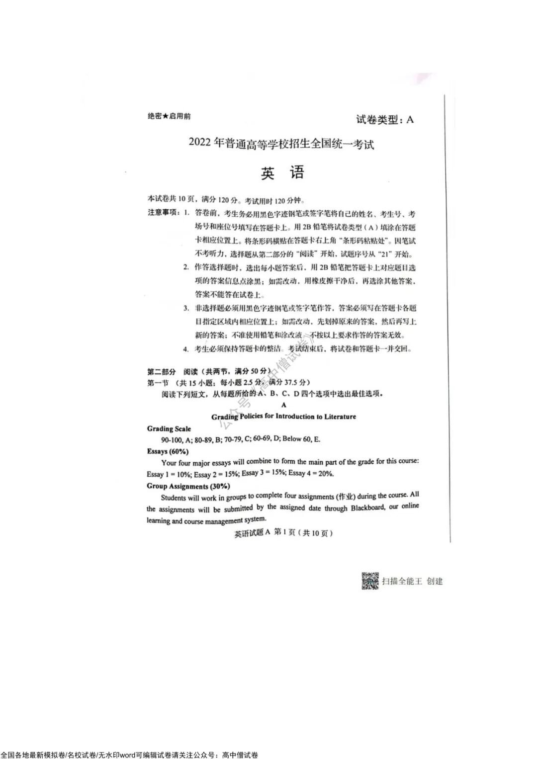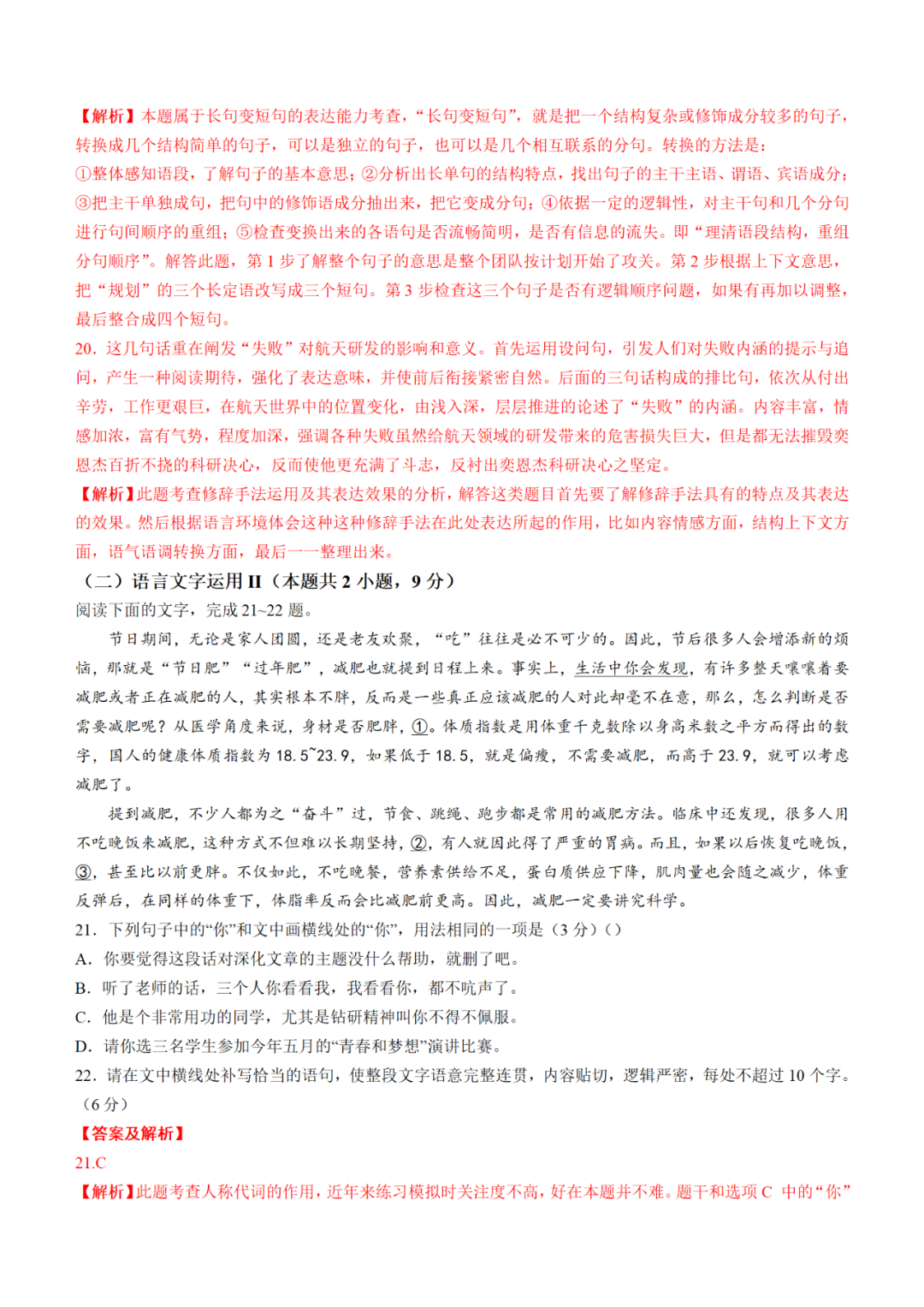 2022年河北高考语文、数学、英语试题及答案!(新高考一卷)全国新高考Ⅰ卷 语文