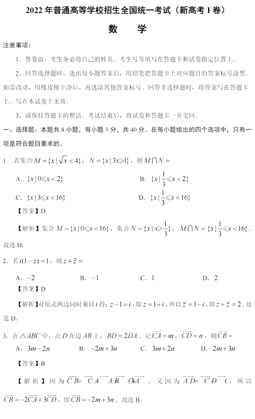 全国新高考Ⅰ卷 数学